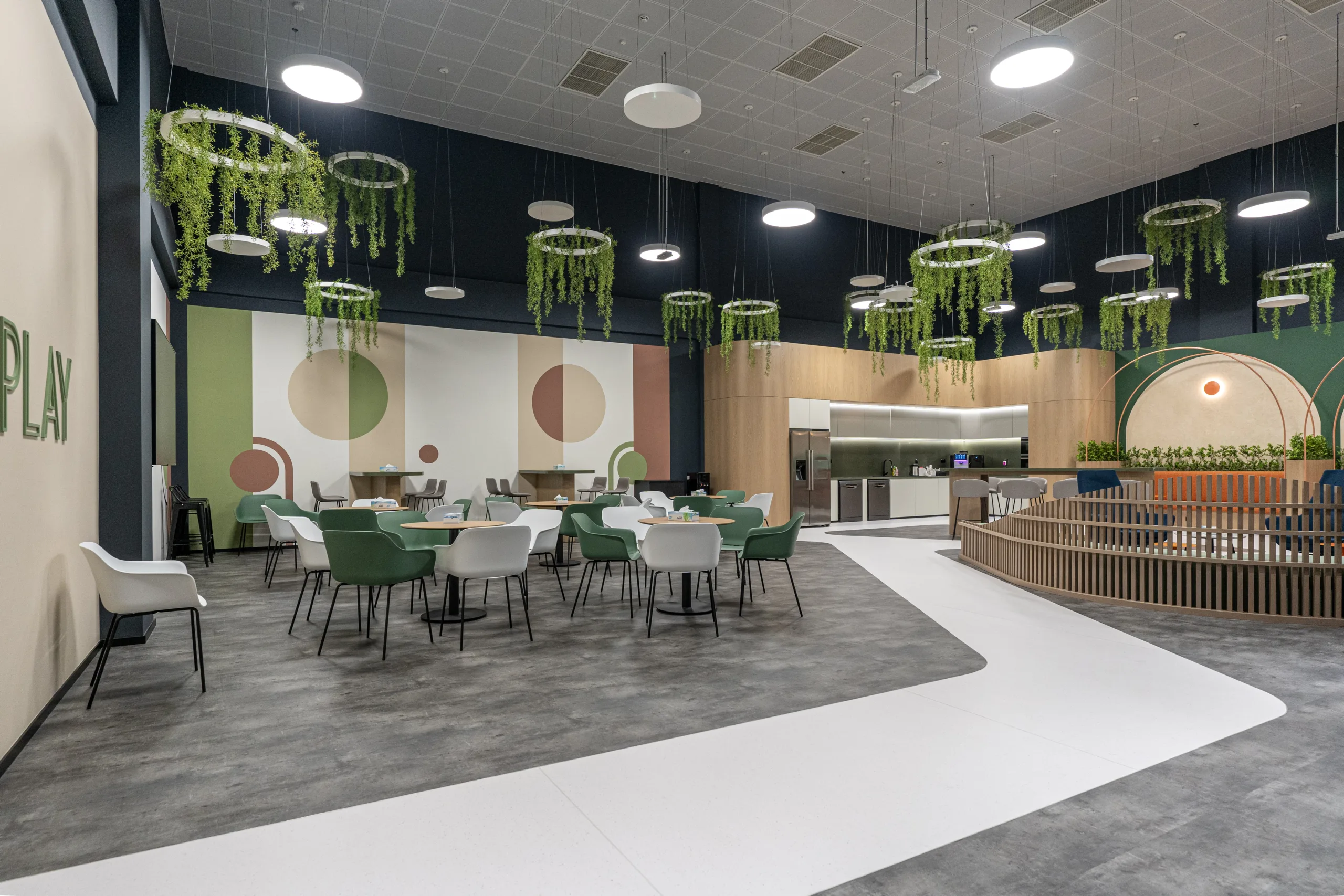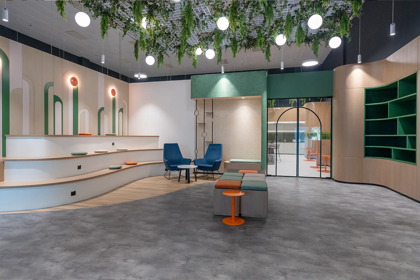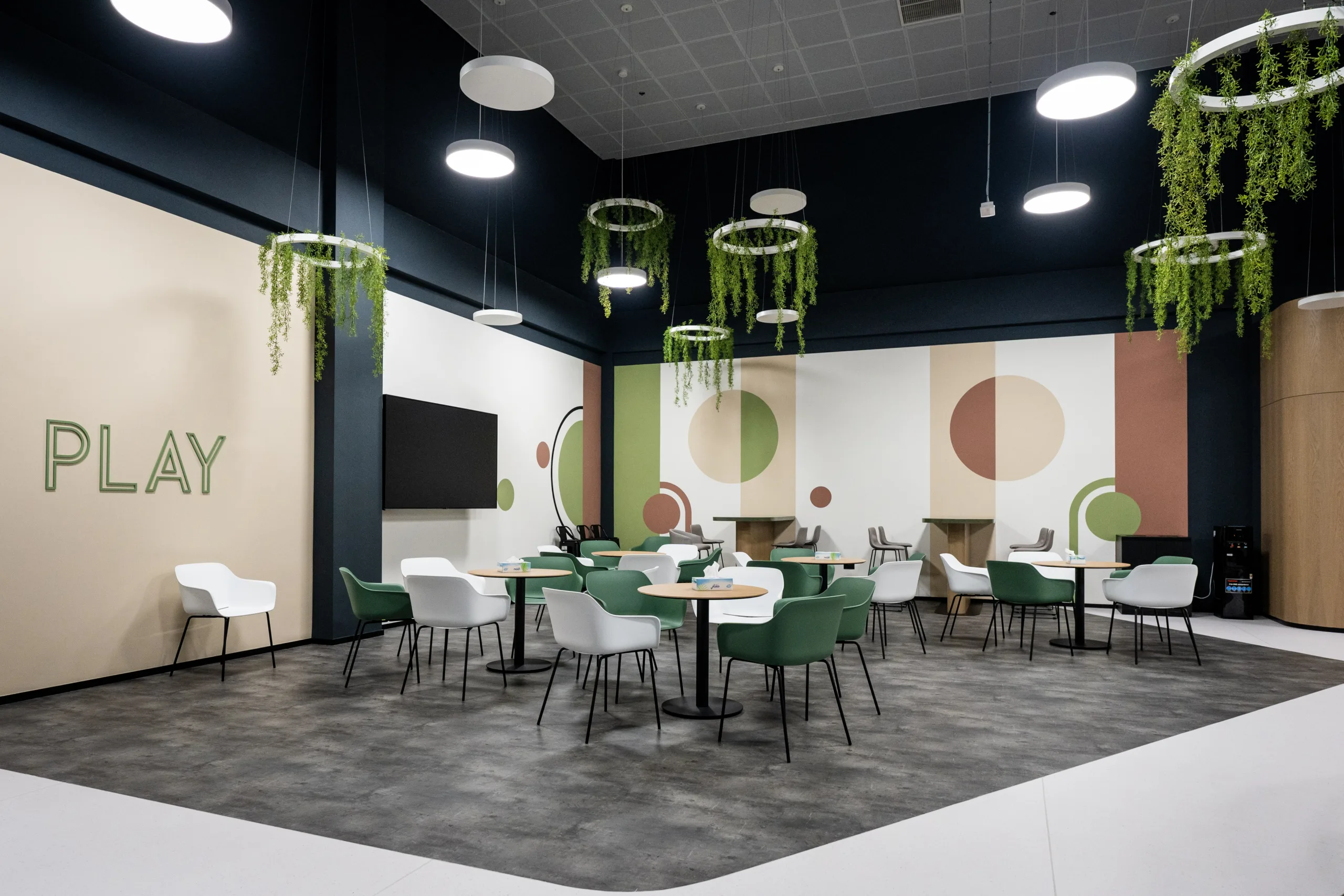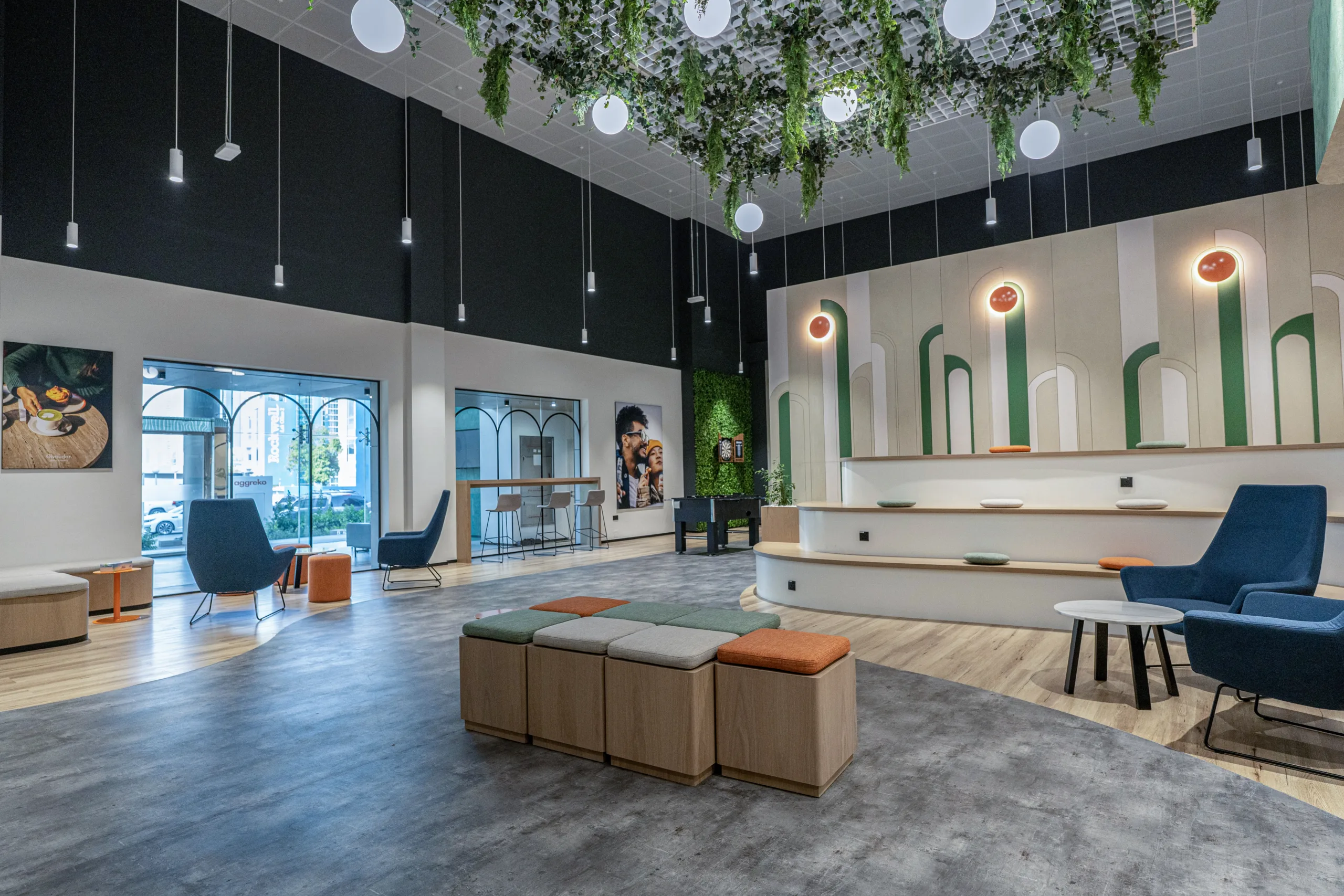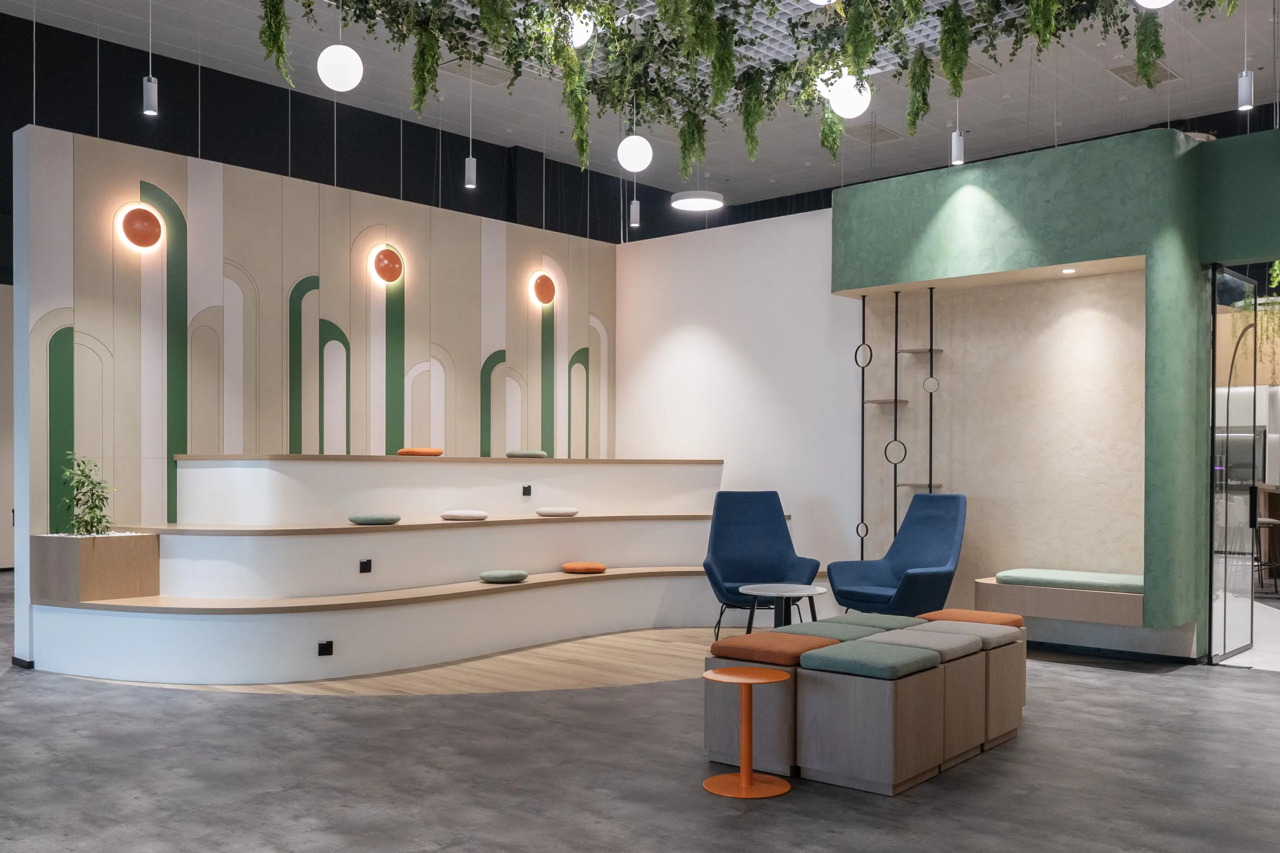 The inclusion of earthy tones, and a palette of greens, browns, and blues reflects the colors of nature, promoting a relaxing and soothing atmosphere that enhances well-being. Our design implements biophilic integration and incorporates plants and natural light that connect occupants with nature, to enhance employee mood, morale, and productivity providing a healthier and more enjoyable work environment.