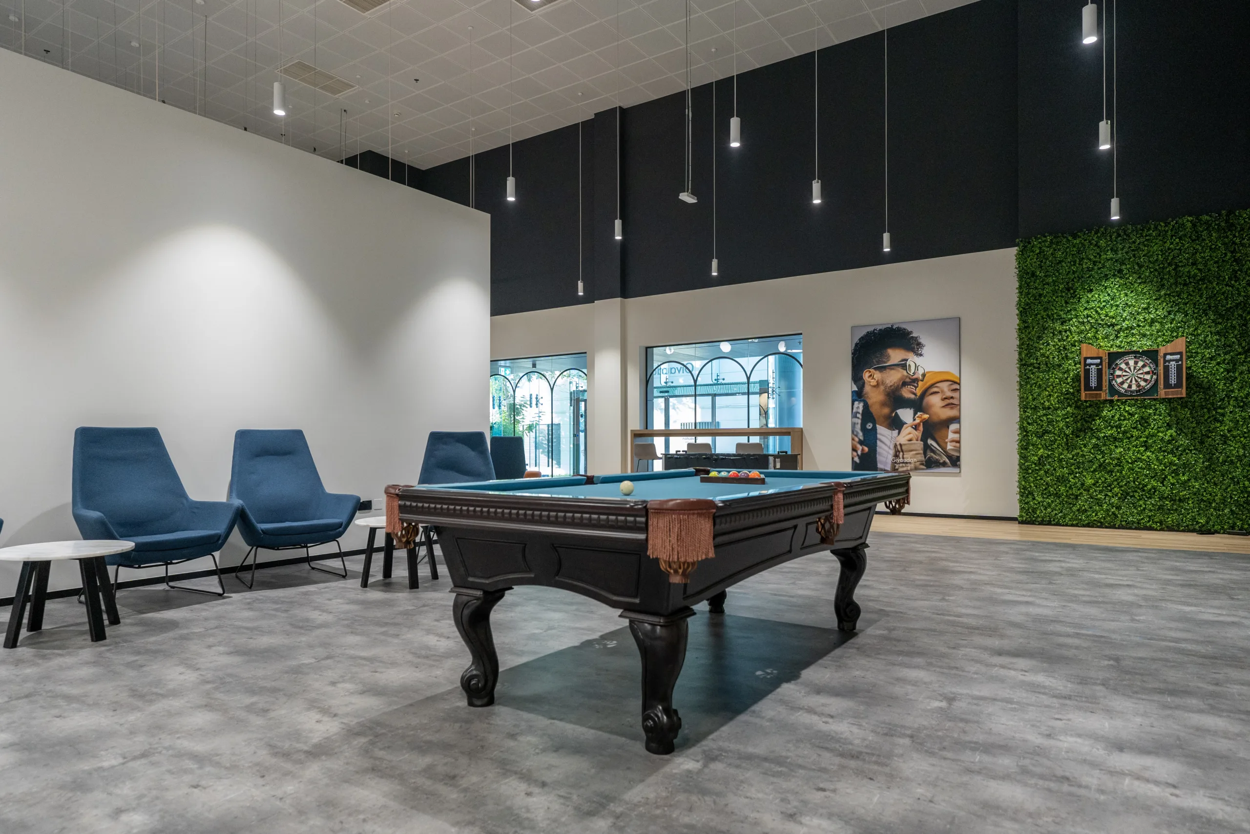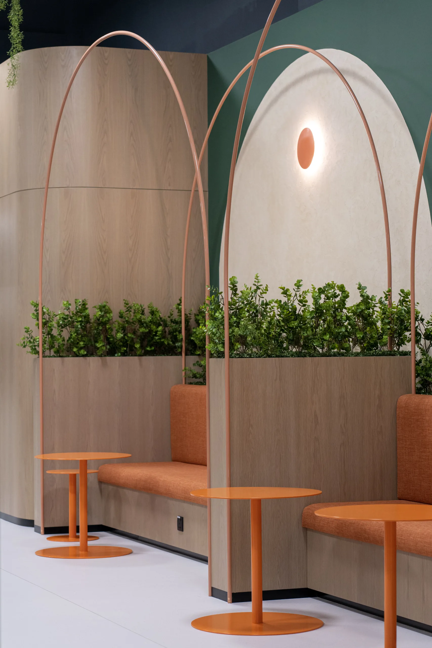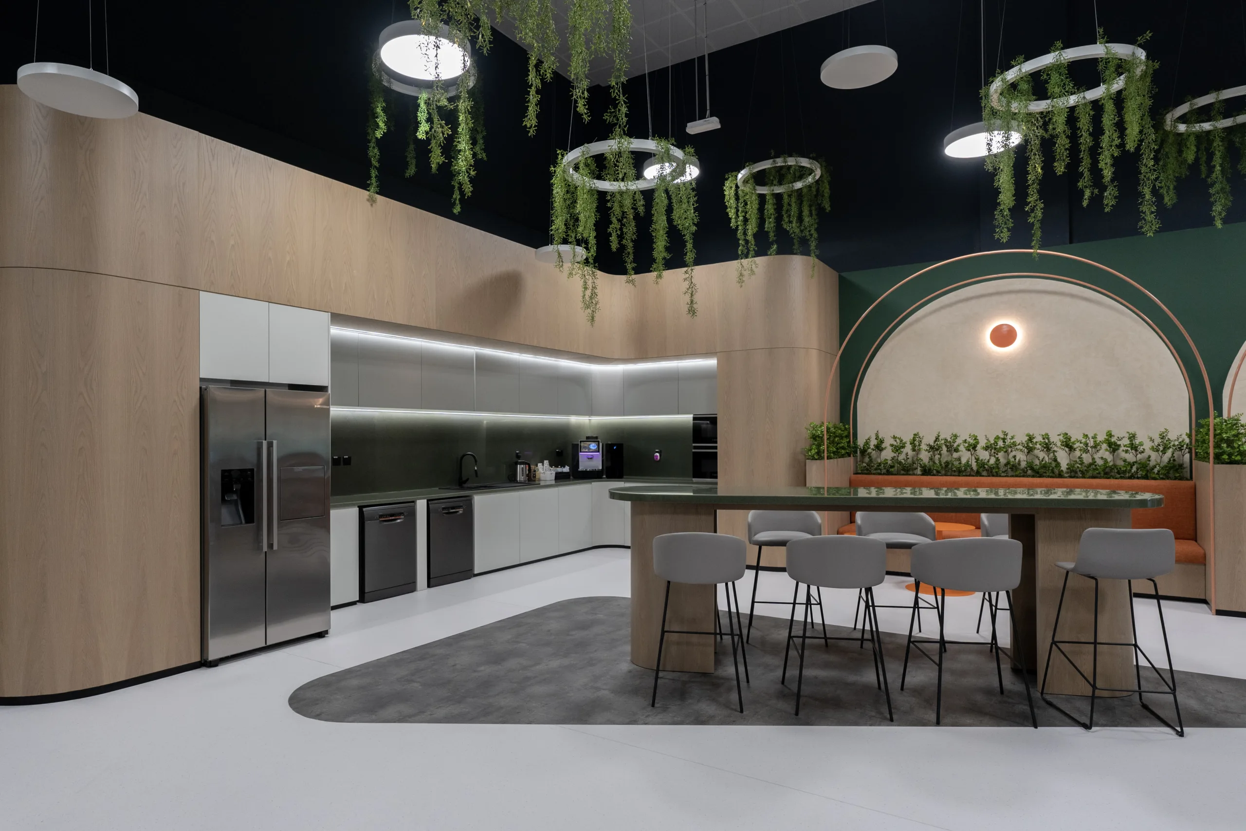 The client’s brief “Human by Nature,” emphasized a design concept rooted in nature, aiming to create a happier and healthier workspace inspired by organic forms and biophilic elements. Pinnacle Interiors Designers interpreted this concept with a holistic human-centric and nature-inspired approach. The design implements organic shapes curved and flowing lines that mimic natural forms and emulate a sense of calm and creativity. This departure from traditional sharp angles and straight lines creates a unique and inviting environment.