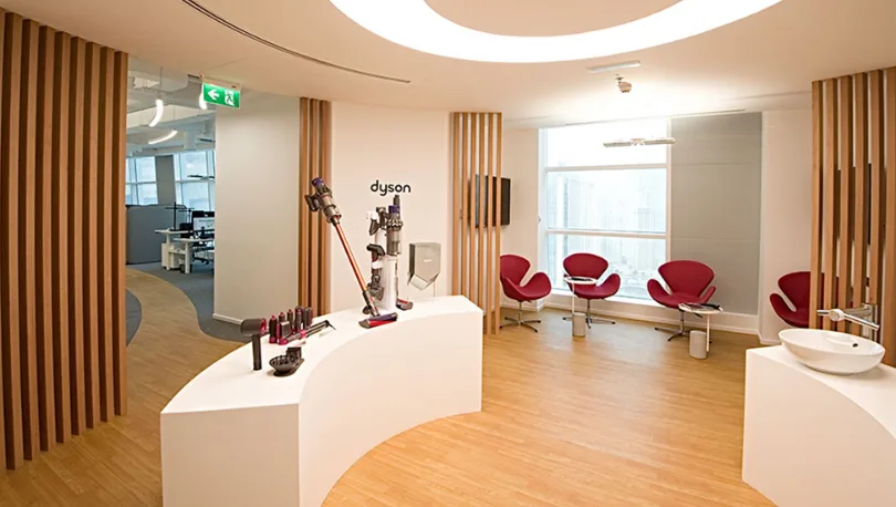 Designed and Build for renowned Hairstyling brand – Dyson, this headquarter office is vibrant, spacious and breathes style.