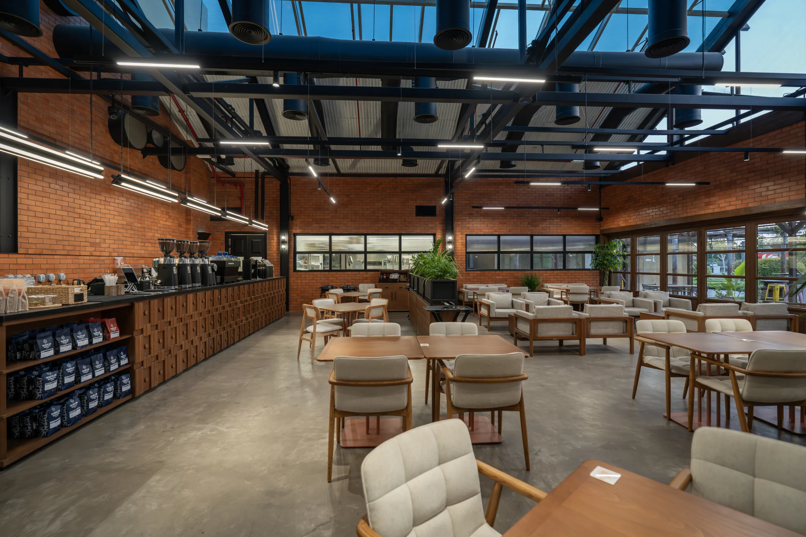 The open plan cafe allows for airy circulation moving between ordering stations, seating spaces and lounge areas, all while overlooking the open kitchen set up. Whether you’re on the go or looking for your next coffee ritual, they’ve got you covered with flavor, craft, and comfort in every sip (and bite)!