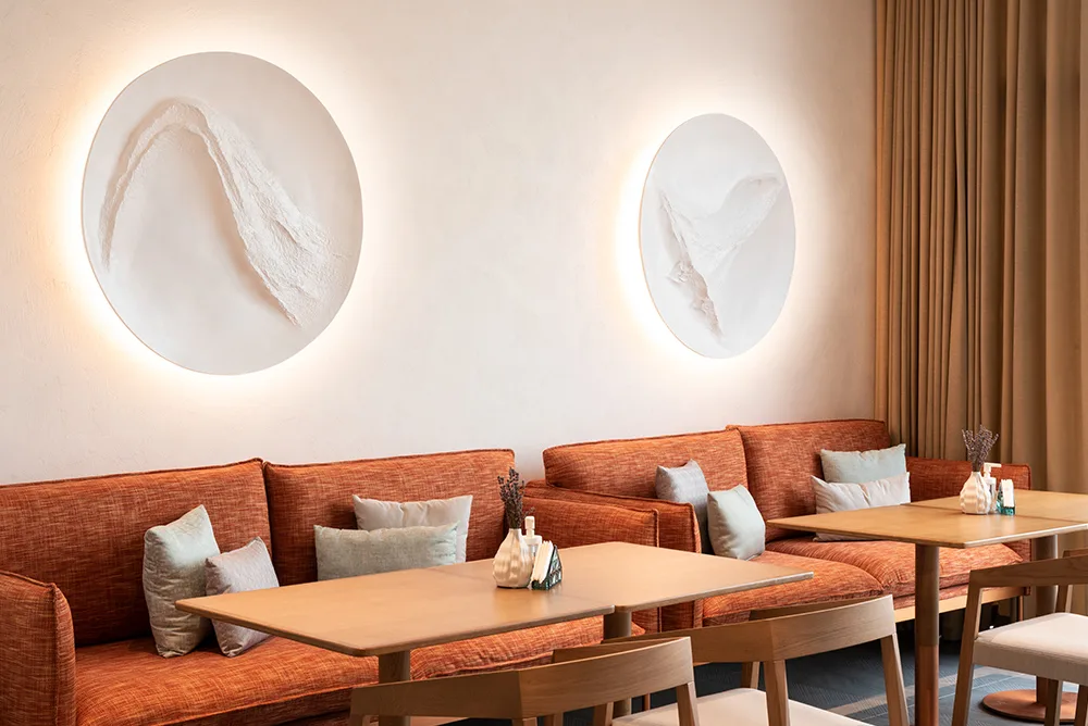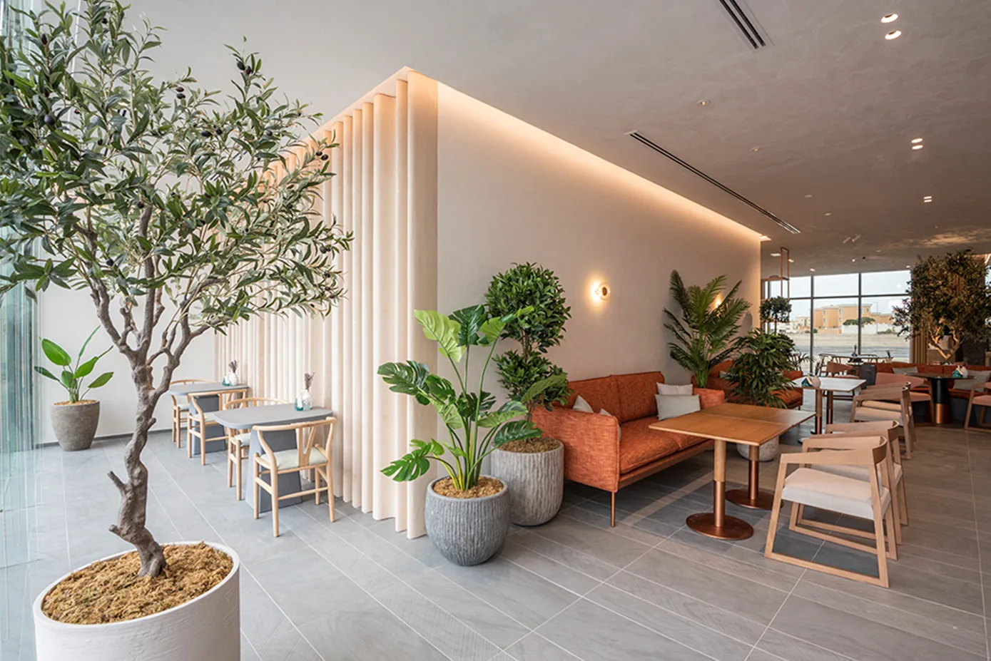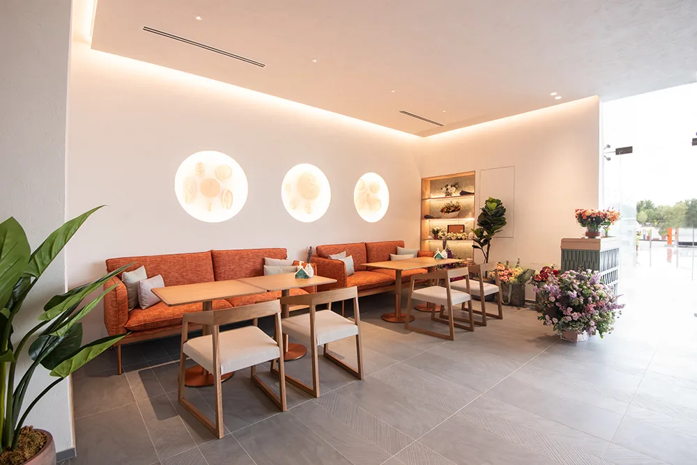 The warm and inviting ambiance makes it an ideal place to relax and savor the perfect food and coffee. The design executed by Sharkitects is bright, inviting and colorful.
