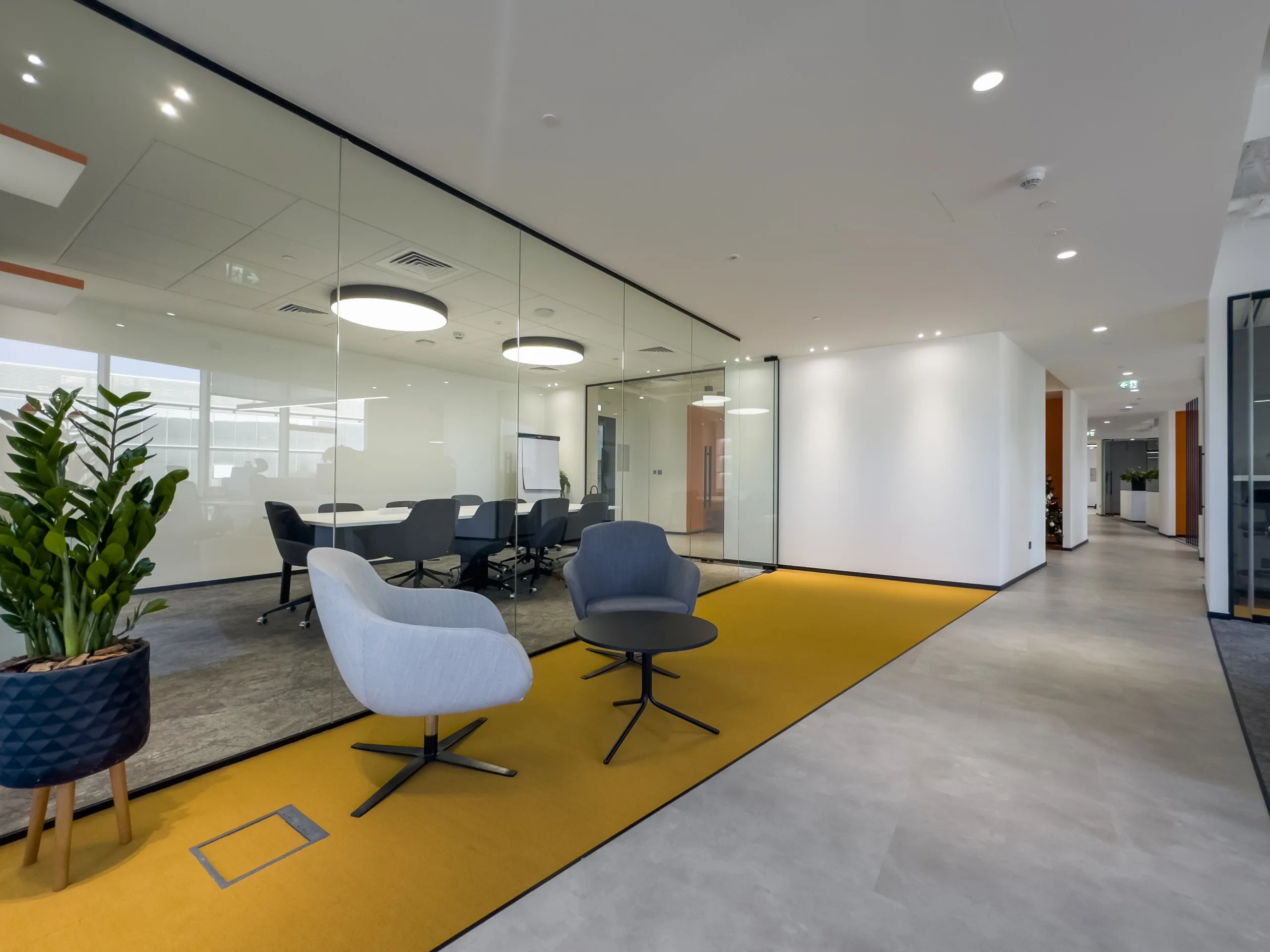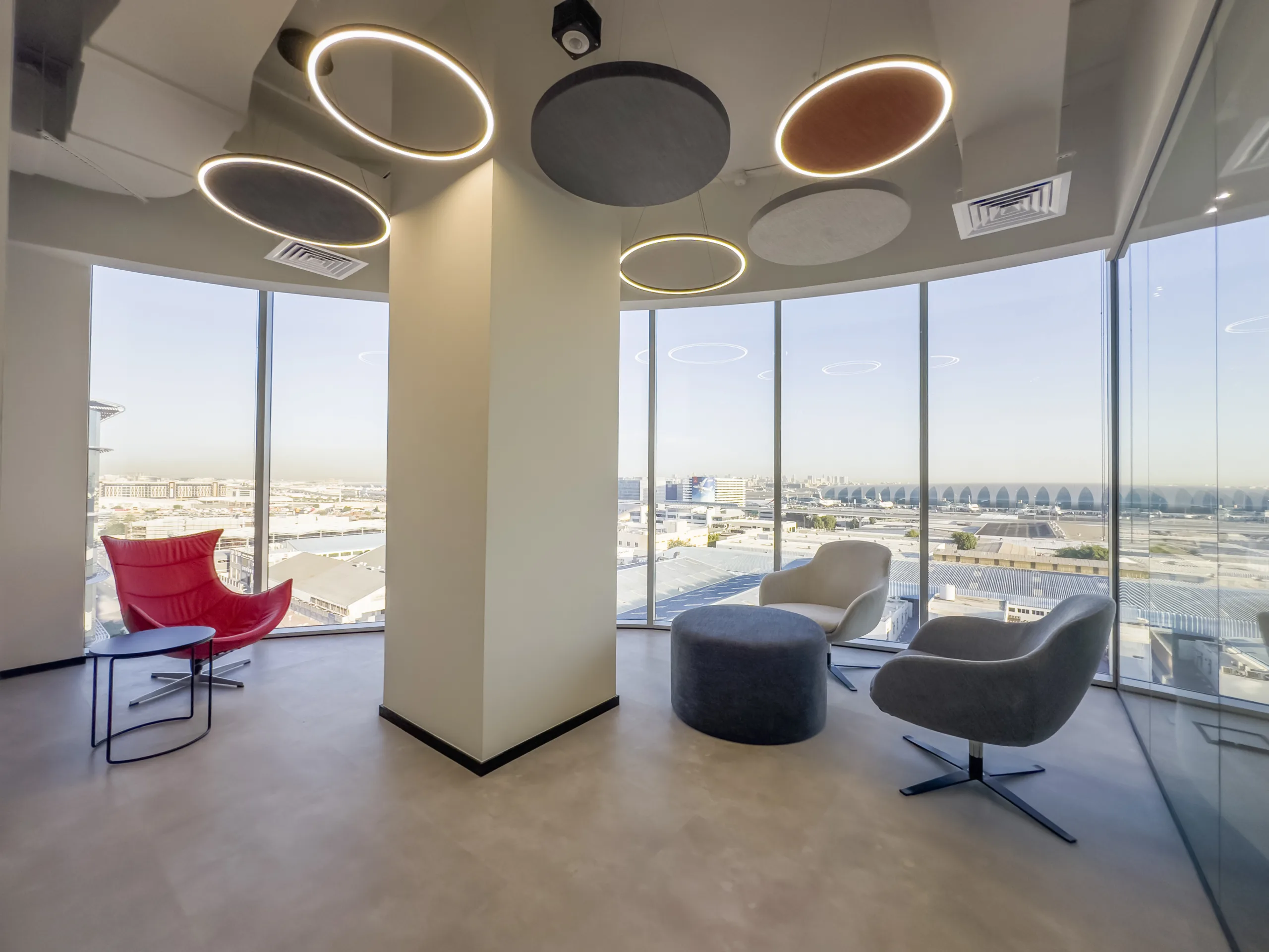 Weidmuller Middle East was designed and built by Pinnacle Interiors to exemplify their global identity as industry leaders in sustainable solutions for power, signals, and data in the industrial connectivity realm this project marks a culmination of excellence to showcase a family-owned organization established in 1850. The office space is strategically positioned in the new Dubai CommerCity which is the first and leading free zone dedicated exclusively to digital commerce in the Middle East, Africa, and South Asia (MEASA) region. The office overlooks the concourse of Dubai International Airport.