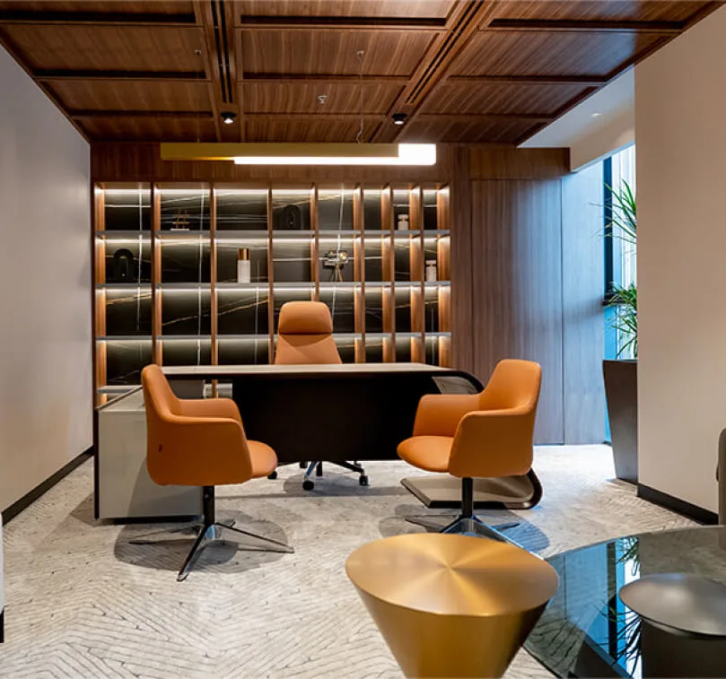 Understanding the unique requirements of different industries, we offer customized solutions that align with corporate goals and brand aesthetics. Our approach integrates strategic space planning, ergonomic workstations, and advanced technology to create modern office environments that enhance workflow and employee well-being. Each project is carefully crafted to maximize space utilization while maintaining an atmosphere that reflects the company’s vision.